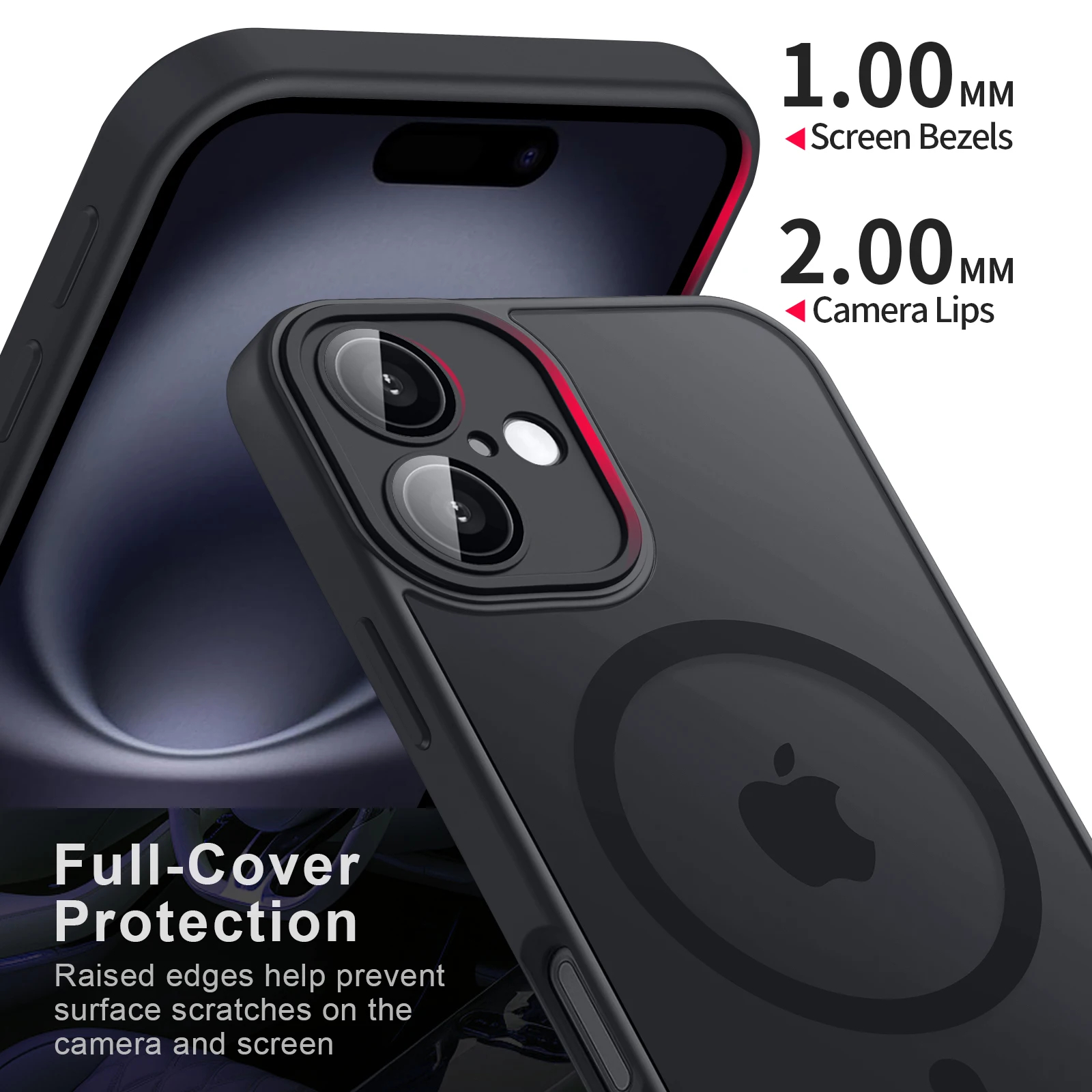 حافظة فاخرة شفافة غير لامعة بتقنية مغناطيسية متوافقة مع الشحن اللاسلكي Magsafe، توفر حماية قوية مضادة للصدمات مع تصميم أنيق يبرز شكل الجهاز.